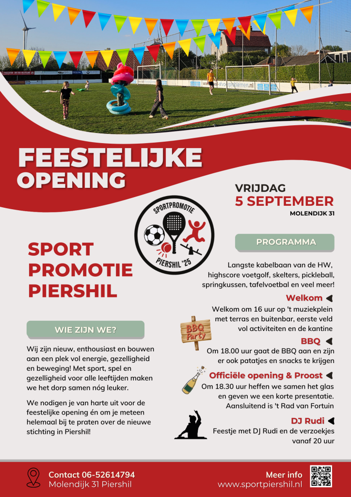 Vrijdag 5 september is de feestelijke opening van Sportpromotie Piershil! Ben je er ook gezellig bij?